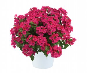 VANESSA™ Verbena are bred for mildew tolerance and flower power. Danziger tests prospective varieties by inoculating the seedlings with mildew. Only those that stay clean and in full color are brought to market. The new VANESSA Compact Series brings the same big color of the original VANESSA™ in a smaller package. This series features a compact habit in more than ten color options including Compact Neon Pink, Compact Violet and Compact Bicolor Purple. Recommended for quarts, the new Compact series provides excellent mildew resistance and won’t cycle out of flower.