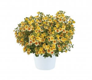 Jamesbrittenia Goldstar™ is the little black dress of combos. The sunny, bright-yellow blooms go with everything! Its trailing habit makes it the perfect addition to baskets, combos and window boxes. This variety has enhanced resistance to foliage disease. It’s also day-neutral and extremely heat tolerant.