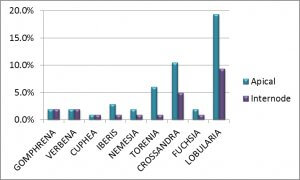 Figure 3: Internode cuttings’ rooting is enhanced compared to apical cuttings