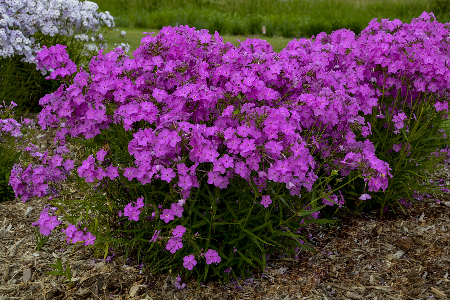 Tall Garden Phlox are a mainstay in the midsummer sun garden, and this hybrid type will extend the color of Phlox by blooming even earlier; starting in early summer. The dark green, glossy foliage is mildew and disease resistant, an improvement on older varieties of Phlox that don’t hold up as well in the heat and humidity of summer. Plant these in an area with good air circulation and plenty of sunshine for the best performance. With a stoloniferous growth habit, this Phlox will spread slowly over the years.
